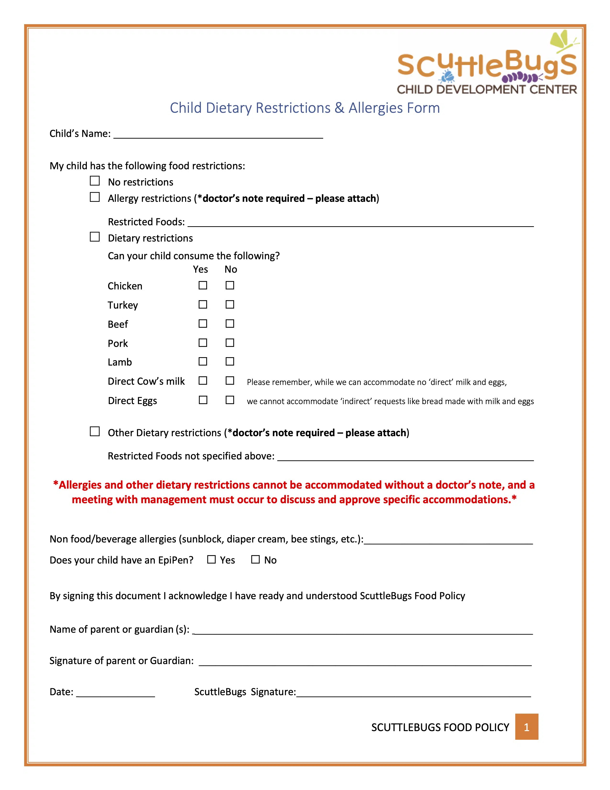 If you need to fill in one of our forms, please select from the following pdf list, complete and return to ScuttleBugs by email and the original with signature when required.